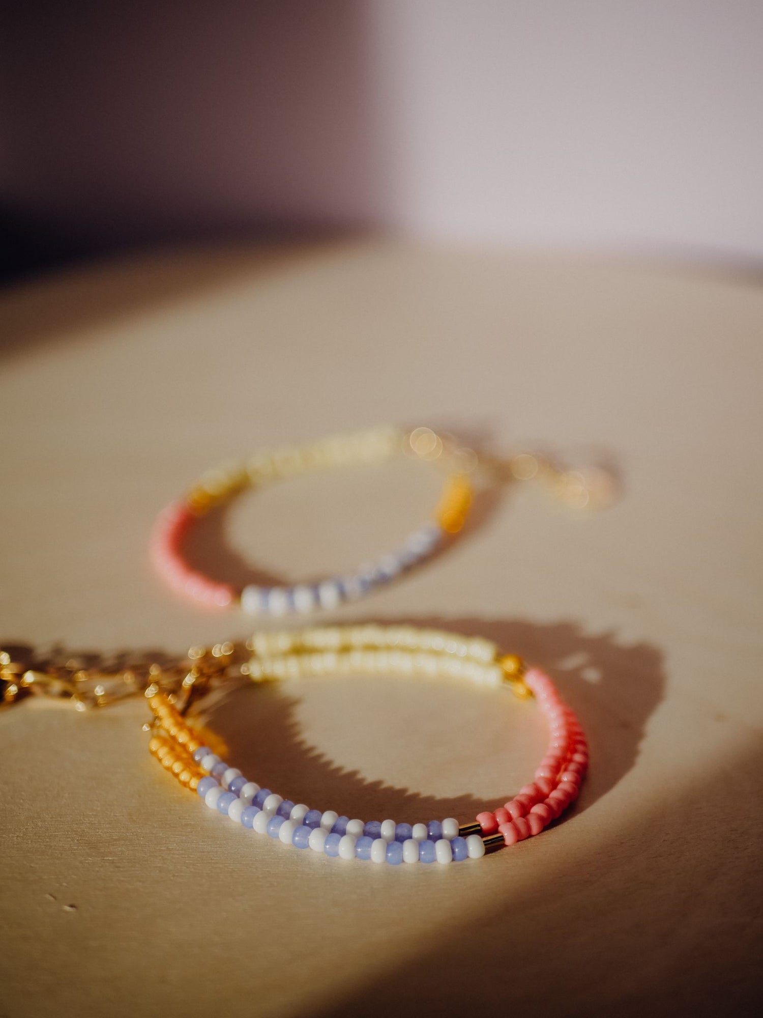 Wunderschönes Armbändchen in sommerlichen Pastelltönen. Hochwertige Glasperlen