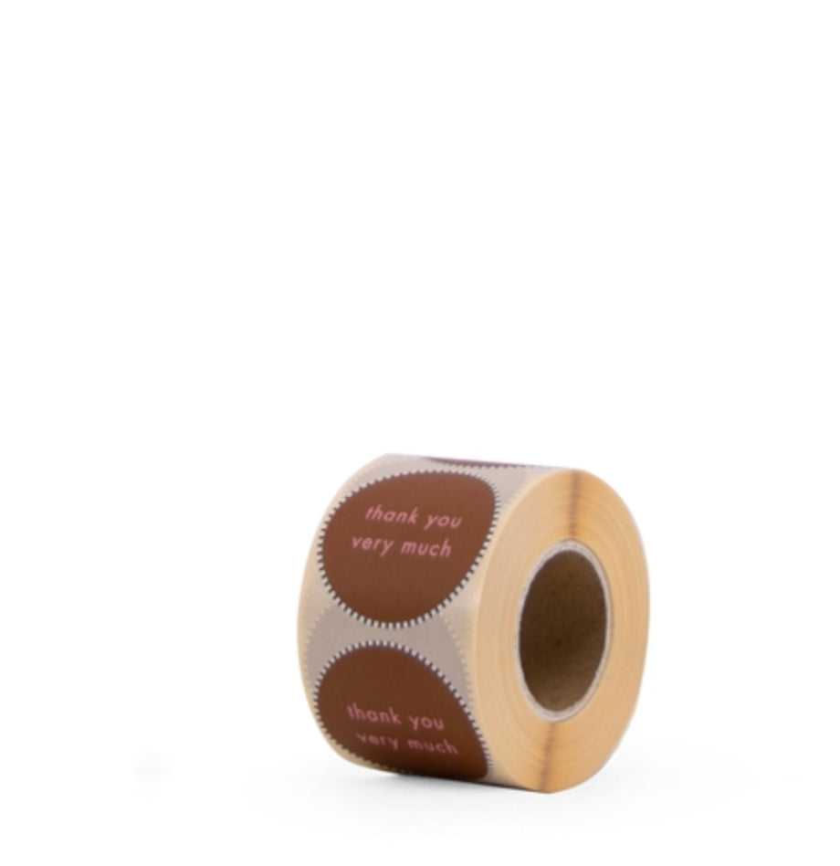 Süße runde Sticker in braun mit Aufdruck in pink.